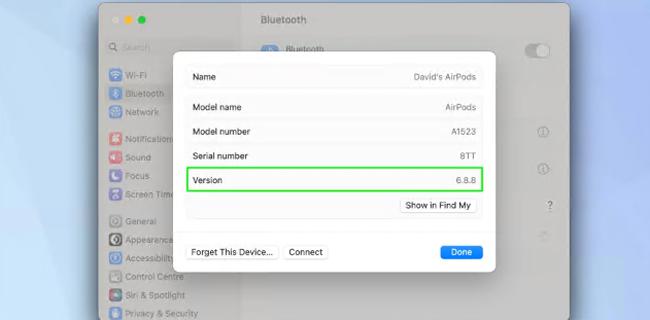 您还可以在运行 macOS Ventura 及更高版本的 Apple Mac 上快速检查您的 AirPods 是否是最新的(您可能需要了解如何更新 Mac)。