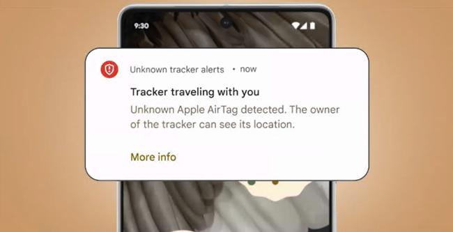 米色背景的 Android 手机显示有关 Apple AirTag 跟踪的警报