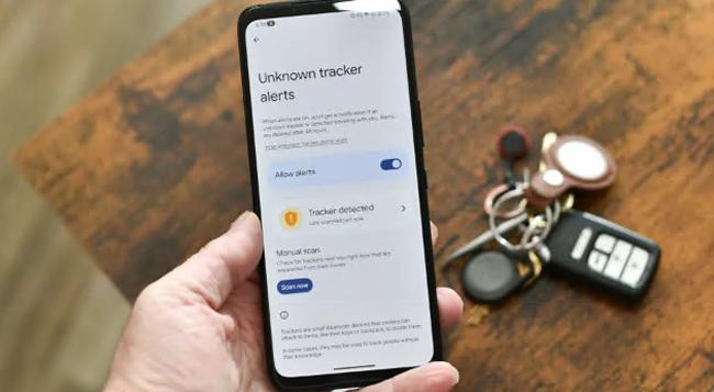 然后,您会看到一个“允许警报”开关,该开关应自动启用 - 如果您愿意,可以将其关闭,但我们建议大多数人将其保留在打开状态,因为这将有助于防止跟踪企图。您还可以在此屏幕上手动扫描您附近目前与其所有者分离的跟踪器。