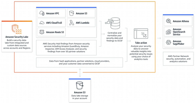 Security Lake 自动收集 CloudTrail、VPC、Route 53、S3 和 Lambda 的日志,并将它们转换为 OCSF 架构。通过Security Hub,它还收集其他 AWS 服务的安全发现,包括 Amazon GuardDuty、Inspector 和 AWS Config。可以通过Security Hub 集成或提供OCSF 格式的数据来获取第三方日志。
