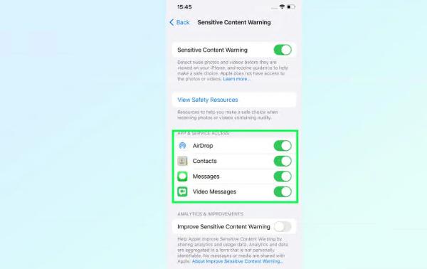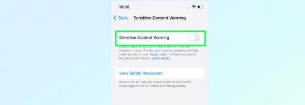 您可以选择将它们全部打开、关闭,或者选择并选择在哪些情况下敏感图像将被审查。为了安全起见,我们建议您将它们全部打开。