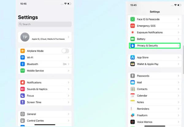 1. 前往“设置”>“隐私与安全”
