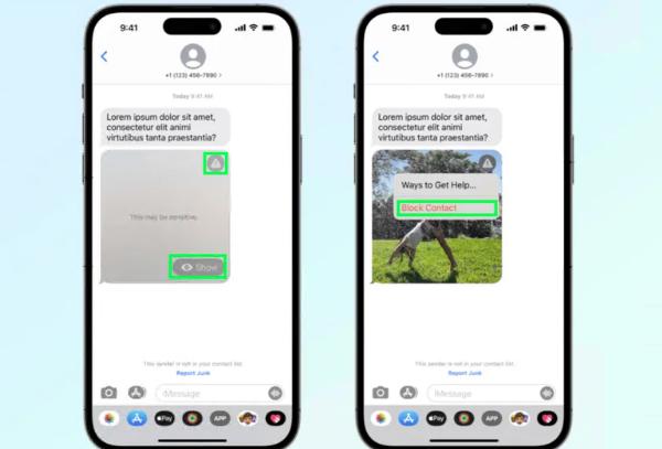 一旦打开设置,iOS 将能够扫描并检测传入的图像和视频消息中是否存在敏感图迹象。如果存在敏感图像将变得模糊为灰色,就像左侧 Apple 的图像一样。
