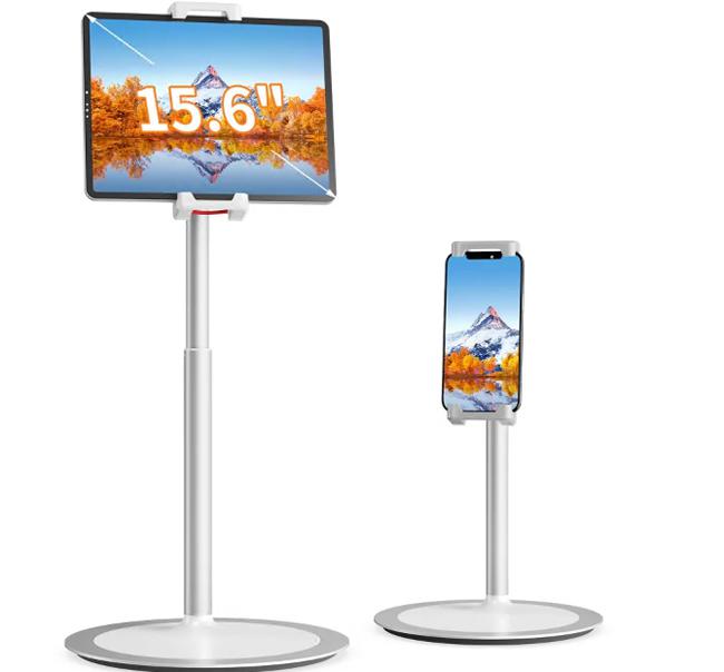如果您想要高度,SAIJI 平板电脑支架可以满足您的需求。该支架的长度从 11.4 英寸延伸到 18.1 英寸,还提供垂直 360 度旋转和 76 度水平角度调节。该支架设计用于容纳手机或平板电脑,可以服务于多种设备,并且与典型的桌面支架相比,确实提供了独特的观看高度和角度。