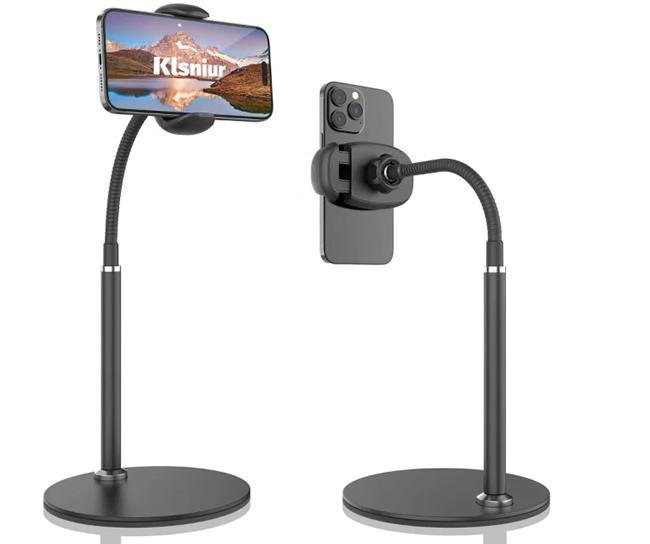 金属加重底座包括用于在桌面上填充的泡沫,并且夹子可以与多种手机和外壳尺寸配合使用,尽管由于握持方式而可能难以使用。鹅颈设计的高度和可调节性可能会占用办公桌上更多的空间,但确实提供了多功能性。这种设计是同类产品中最实惠的设计之一。
