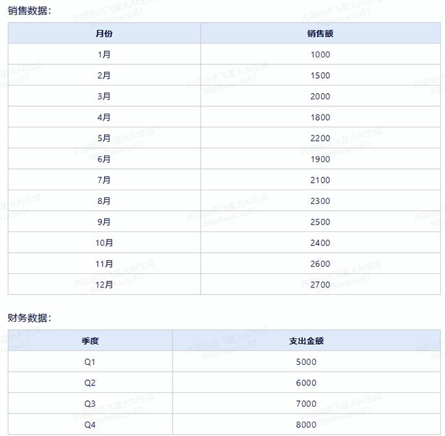 在每个工作表中输入相应的数据。例如,在“销售数据”工作表中输入每个月的销售金额,在“财务数据”工作表中输入每个季度的支出金额。