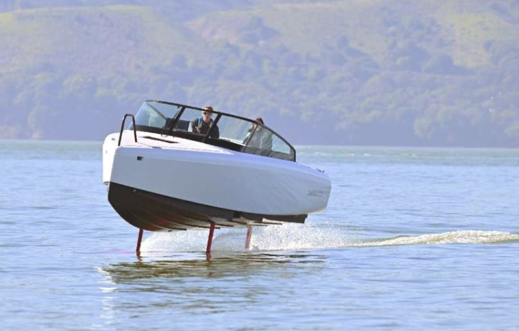 充当水下机翼的水翼在船加速时抬起船,只留下转子和水翼浸入水中,大大减少了摩擦。