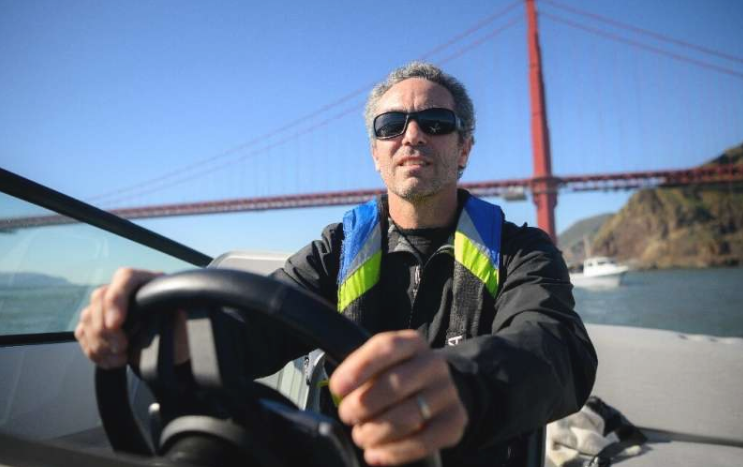 Candela US 首席执行官法国水手 Tanguy de Lamotte 在加利福尼亚州索萨利托驾驶该公司的“飞行”电动船。
