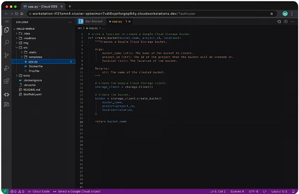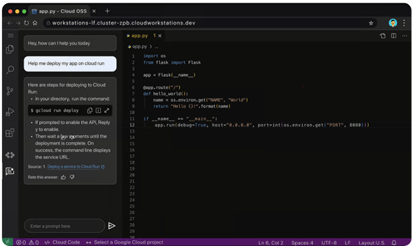 代码协助将通过 Google Cloud 中的多种产品和服务提供,例如 Cloud Workstations、我们完全托管的安全开发环境,以及 Google Cloud Console 中的其他代码编辑体验。开发人员还将在 Cloud Shell Editor 中或通过我们针对 VSCode 和 JetBrains IDE 的 Cloud Code IDE 扩展找到代码帮助。它支持多种语言,包括 Go、Java、Javascript、Python 和 SQL。