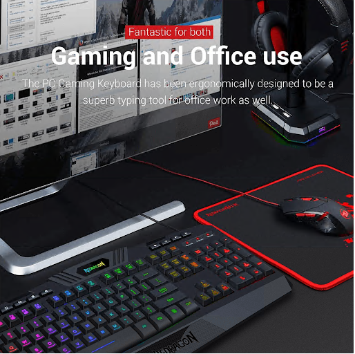 包括一个 Redragon RGB 背光电脑游戏键盘和一个 RGB 背光游戏鼠标。