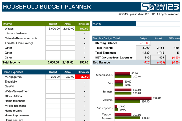 此预算模板包括图表和每月费用清单,可根据您自己团队的需要进行定制。如果您想知道如何在 Excel 中创建家庭预算,那么此模板将为您提供您正在寻找的解决方案。