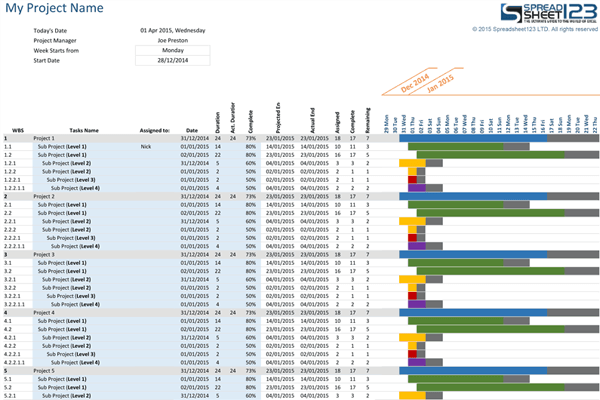 这个先进而强大的模板使您能够控制准确地管理计划、资源和可交付成果。使用此甘特图模板跟踪项目的每一个可交付成果。