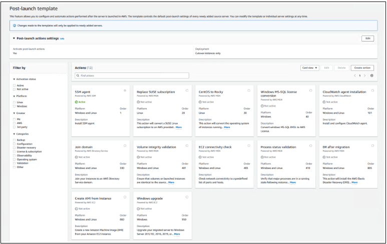 其他启动后现代化操作——在此更新中,Application Migration Service 添加了八个额外的预定义启动后操作。当您在 AWS 上启动迁移的应用程序时,这些操作将应用于它们。