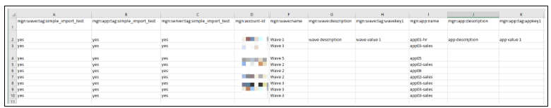 通过导入功能,您现在可以将 CSV 格式的清单导入到应用程序迁移服务中。这使您可以轻松管理大规模迁移,并获取源服务器、应用程序和 wave 的清单,包括它们的属性。