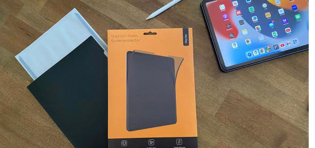 PenTips 的 PenMat 边缘使用薄磁铁将薄膜固定在屏幕上,并配有一个塑料套,可在不使用时存放保护套。涂抹和去除非常简单,而且没有气泡