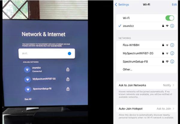 1. 确认您的电视和设备连接到同一 Wi-Fi 网络