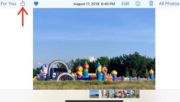 点击照片应用程序中所选照片或视频下方的共享图标