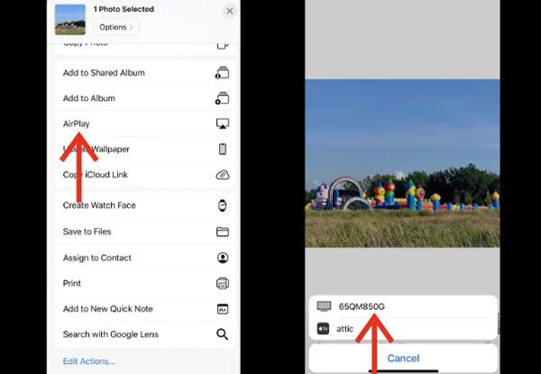 如何使用 AirPlay 在电视上查看照片的步骤: