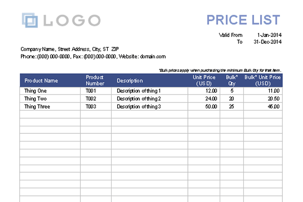 为您提供给客户的产品或服务创建专业价目表。