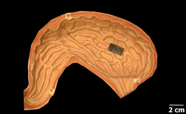 研究人员表明,他们可以卷起这个机器人,这样它就可以装进一个可以吞咽的药丸中,以便部署在难以到达的区域。在屠宰场的猪胃中对机器人进行实验时,他们发现它可以止血,他们认为它还可以帮助治疗溃疡、息肉和肿瘤,以及针对肠道的其他区域。