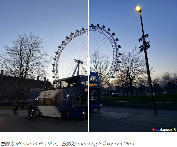 大多数人可能会将这些照相手机保持在默认分辨率,从而产生基本相同的图像大小,并且应该提供相当的细节水平。然而,现实情况是,S23 Ultra比iPhone 14 Pro Max具有优势,具有明显更清晰的细节。当你想到这一点时,这并不奇怪,因为三星的像素数量是它的四倍。区别不在于黑夜和白天,而是在以 100% 查看像素分箱图片时可以看到。