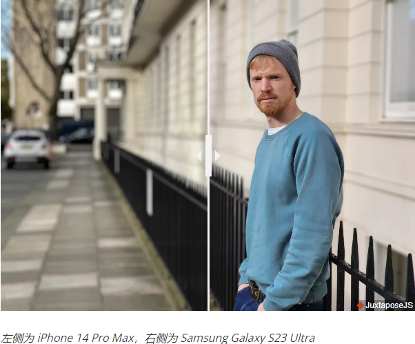 至于风格 - 这当然是主观的 - 总体而言,S23 Ultra的图像看起来更饱和,而iPhone 14 Pro Max的图像看起来更自然。我更喜欢后者,因为S23 Ultra有时会因饱和度过高而过火,某些颜色显得过于占主导地位——其中一个例子是人像中的嘴唇过于粉红色。