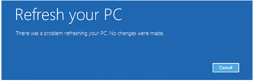 在上面的屏幕截图中可以看到相同错误的变体,当尝试刷新 Windows 10 系统而不是重置时出现错误。