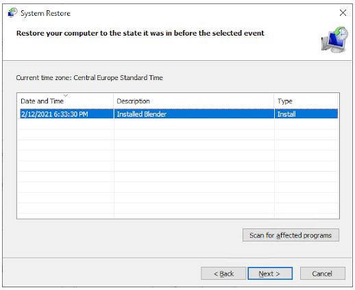 如果您有系统还原点设置,您可能能够返回到它并自动修复错误。通过返回这些点之一,您基本上可以让您的计算机回到过去。