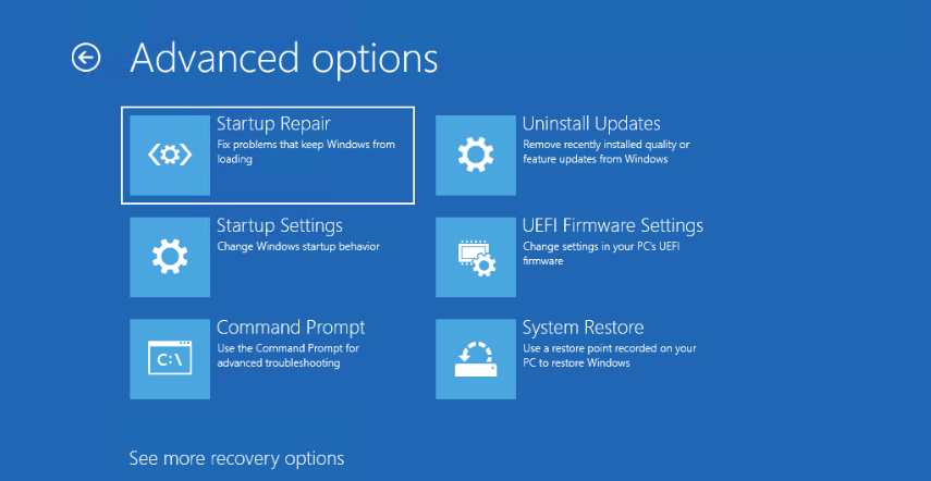 注意:即使您的 PC 当前陷入重置循环,您也可以访问命令提示符并可能从那里解决问题。为此,您只需使用启动修复工具即可。