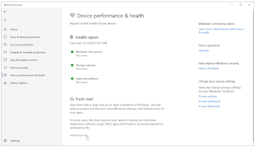 在“重新开始”部分下,单击“附加信息”链接。