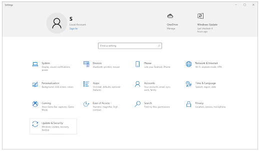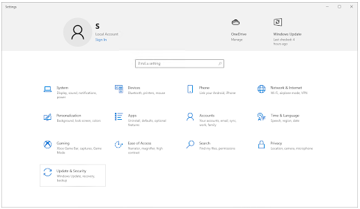 按下键盘上的Windows + I键,打开“设置”应用程序。或者,您可以单击 “开始”菜单中的齿轮图标。单击更新和安全。