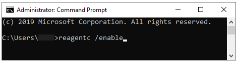 通过键入reagentc /enable重新启用 ReAgentc.exe 进程。再按回车。