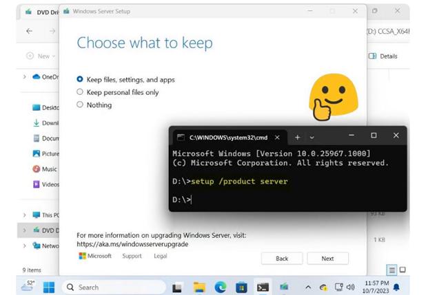 6. 在命令提示符应用程序中,键入setup /product server以启动该过程。PCWorld 指出,“在安装过程中,会出现一条消息,表明正在安装‘Windows Server’,但实际上安装的是 Windows 11 Home 或 Windows 11 Pro。”