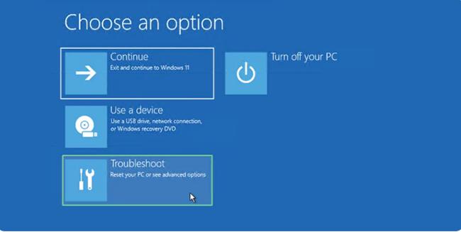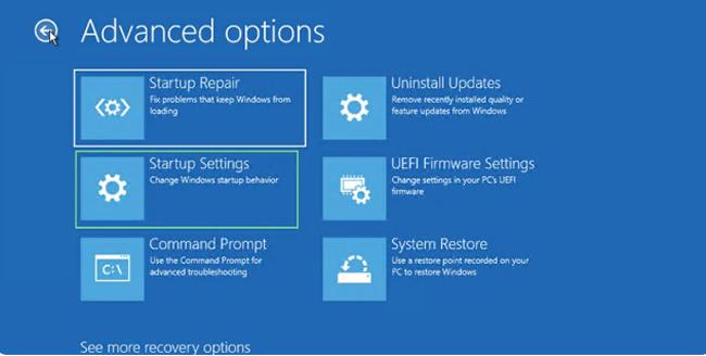 步骤 4:导航至启动设置:计算机重新启动后,单击“疑难解答”。