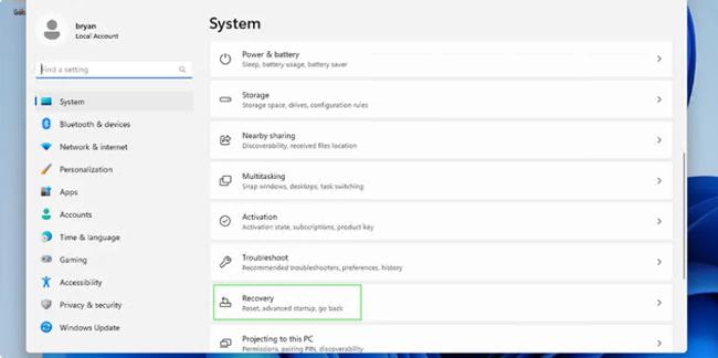 步骤 2:访问恢复选项:单击左侧窗格中的“系统”,然后选择右侧窗格中的“恢复”。