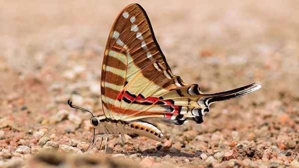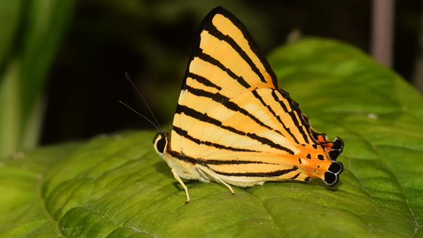 这种体型虽小但引人注目的条纹穿孔蝶生活在印度次大陆、东南亚、马来西亚和印度尼西亚西部