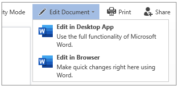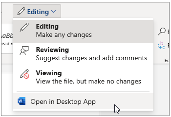 如果您更愿意在Word 应用程序中工作,请从窗口顶部的“编辑”切换到“在桌面应用程序中打开”。