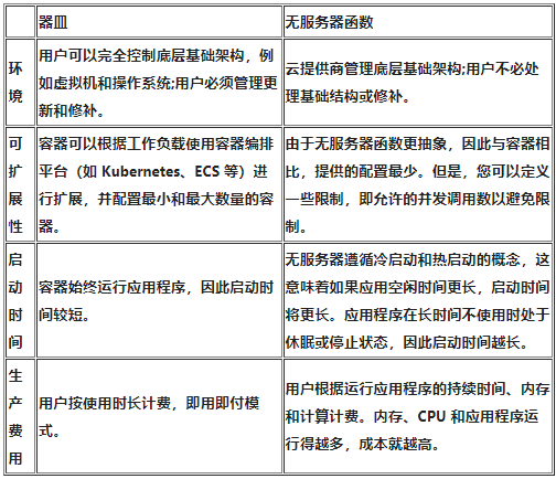 下面,您可以看到容器和无服务器函数之间的一些主要区别。