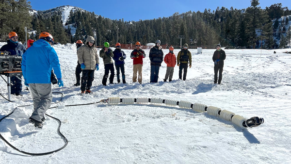 自 2019 年问世以来,蛇形机器人经历了无数次改版;目前,EELS 1.0 长 13 英尺,重 220 磅,由 10 个相同的旋转部分组成,混合使用螺纹来提供推进力、牵引力和抓地力。