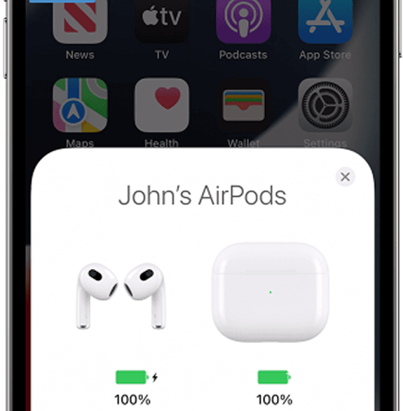 轻按外壳时,您会通过两种方式查看您的 AirPods(Pro 或 AirPods 第 3 代):