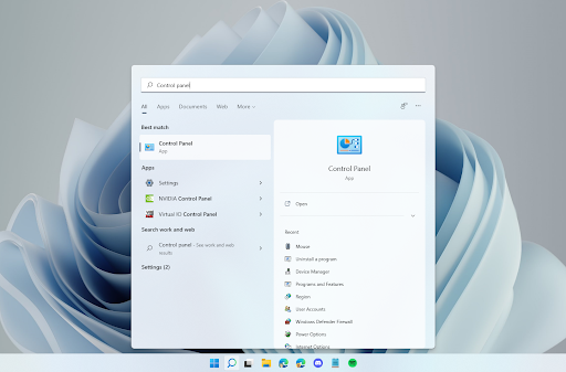 在搜索框中键入控制面板。当您在结果中看到它时,单击它以启动应用程序。
