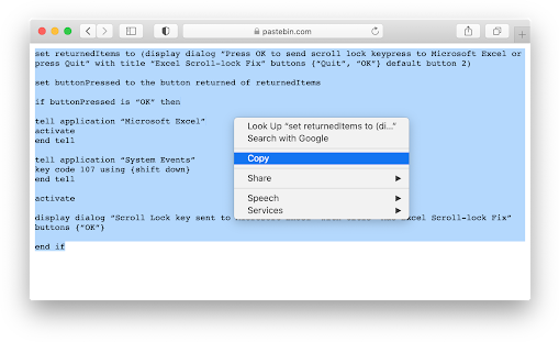 单击此处在浏览器中打开脚本。用光标突出显示所有内容,然后右键单击文本并从上下文菜单中选择复制。或者,使用? + C键盘快捷键。