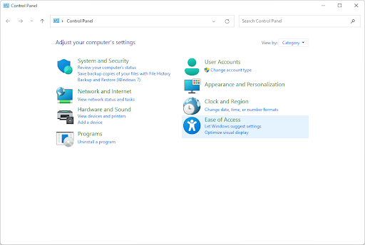 单击轻松访问标题。如果看不到它,请确保使用右上角的下拉菜单将视图模式切换为类别。