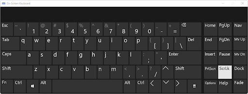 您可以使用屏幕键盘(一种辅助工具)禁用键盘上的 Scroll Lock。对于 Windows 和 macOS,使用搜索功能找到可视键盘,然后找到 Scroll Lock 按钮。禁用它然后测试 Excel 是否可以使用箭头键导航!