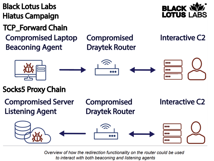 研究人员表示,使用受损路由器作为代理基础设施可能是为了混淆 C2 操作。