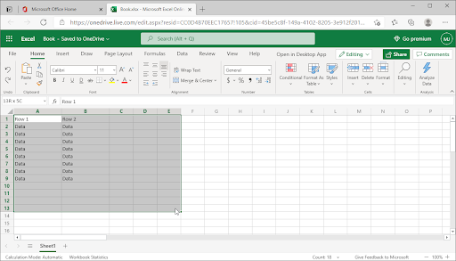 以下是模拟网格线并使用免费的 Excel Online 工具打印它们所需遵循的步骤: