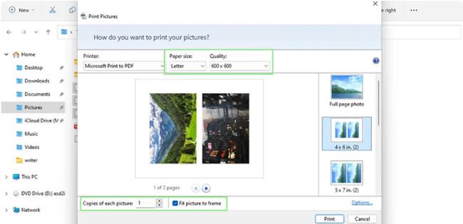 步骤 5. 调整其他打印设置:根据需要配置其他设置,例如纸张尺寸、质量和每个图像的份数。