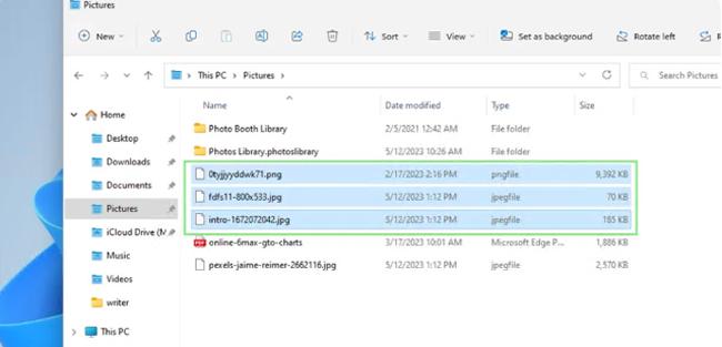 步骤 1. 选择图像:打开文件资源管理器并导航到包含要合并的图像的文件夹。按住 Ctrl 键并单击每个图像来选择所有图像。