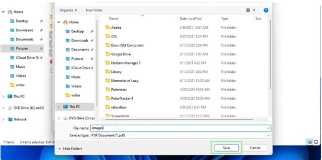 步骤7.保存PDF文件:选择保存PDF文件的位置,输入文件名,然后单击“保存”按钮。您的图像现在将合并成一个 PDF 文件。